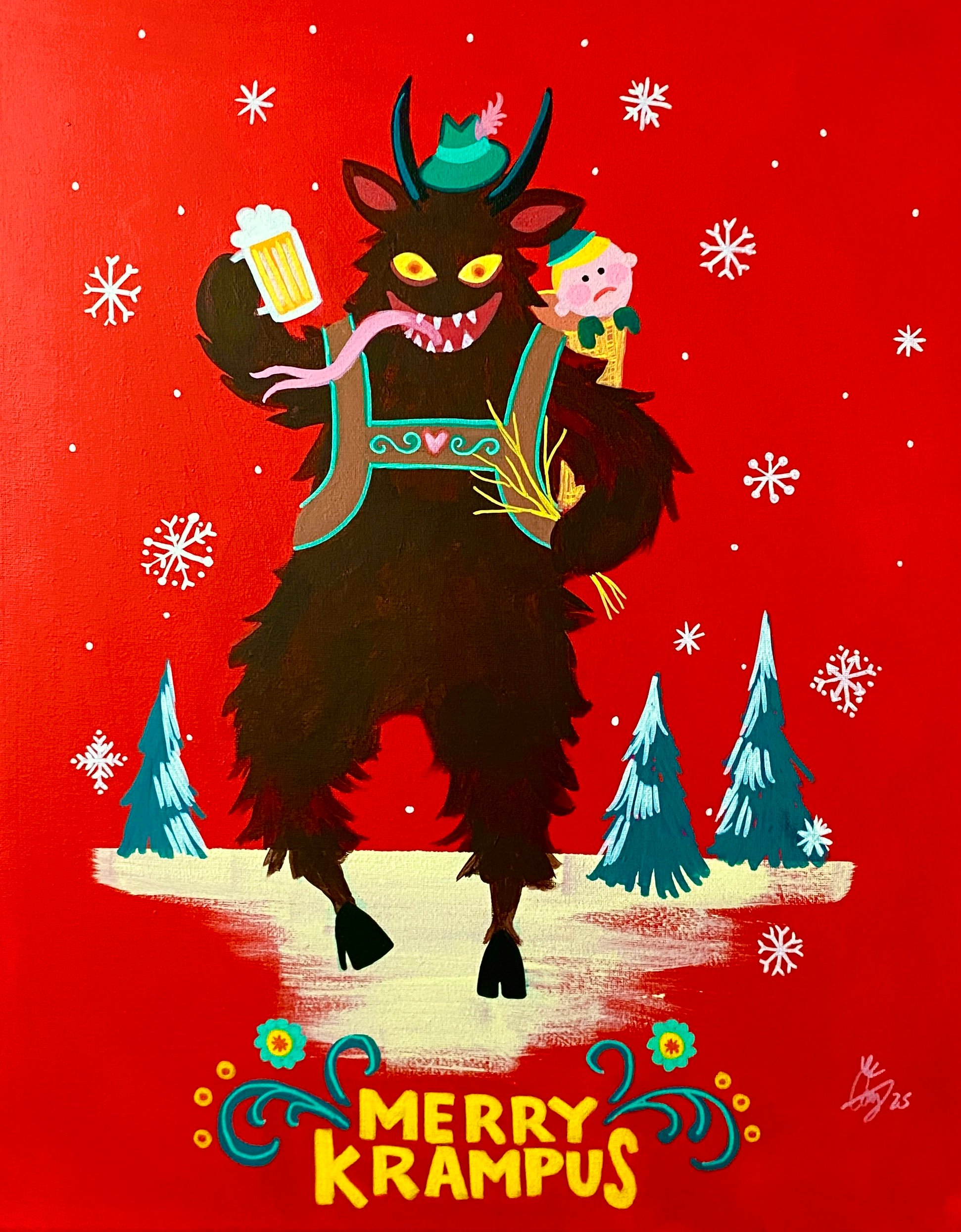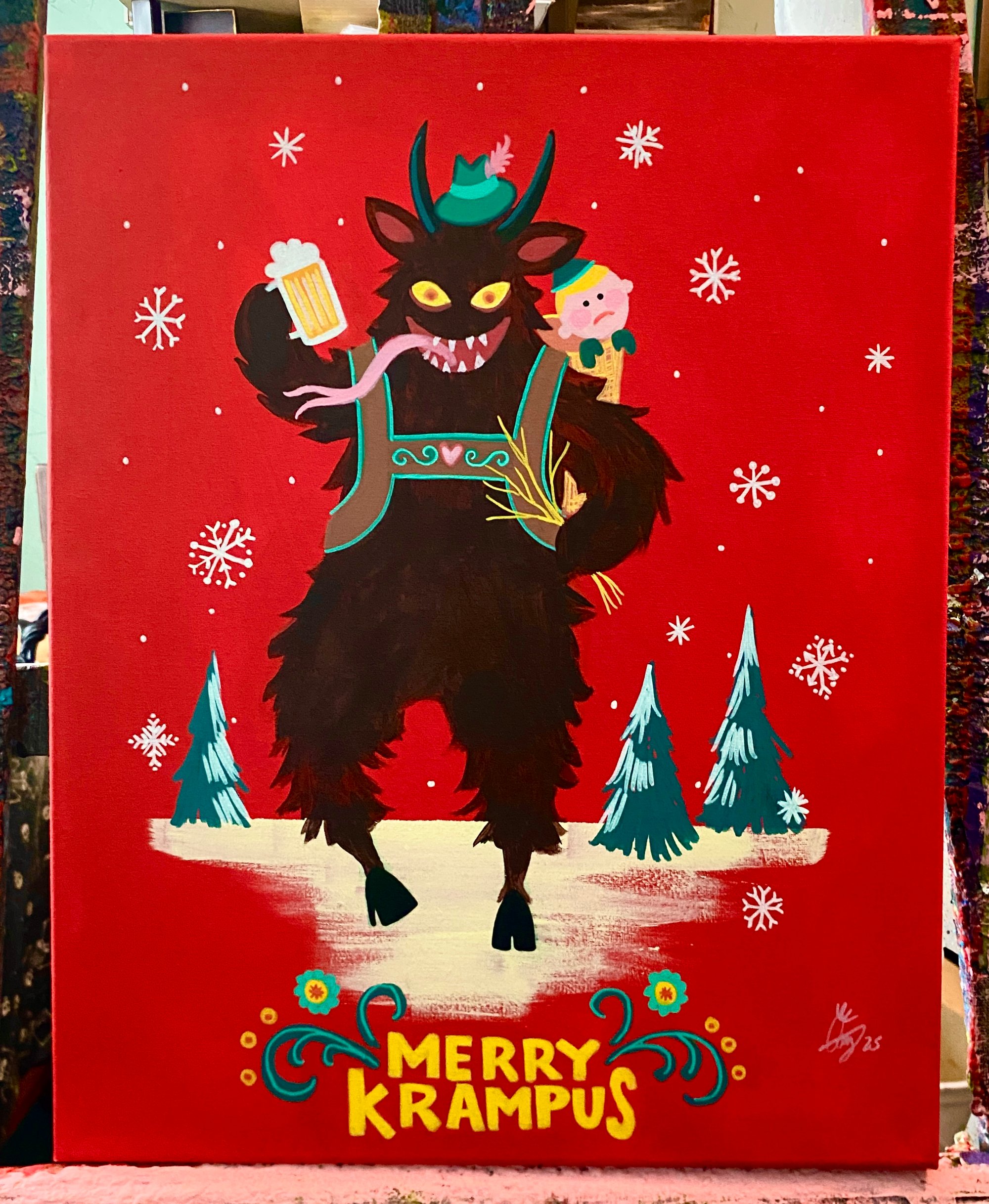 New painting in acrylic and acrylic marker on 3/4 inch thick back stapled canvas. Signed and dated by the artist. Measures 16x20 inches. One of a kind. Ready to hang unframed, or with a standard 16x20 frame.