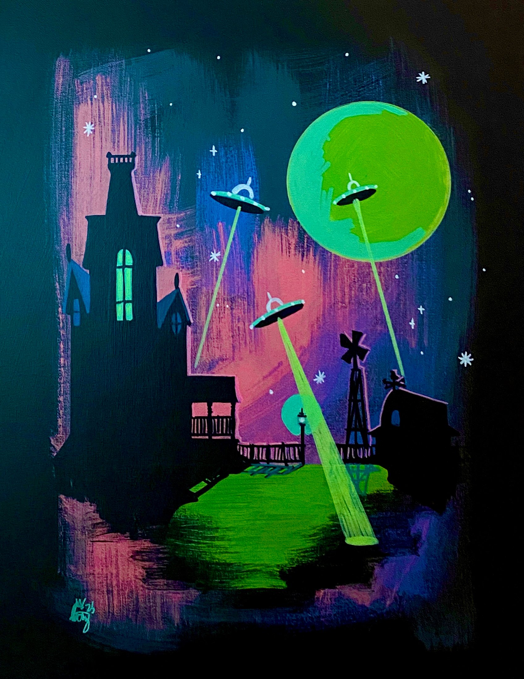 New painting in acrylic, acrylic marker and glitter on 3/4 inch back stapled canvas. Signed and dated by the artist. Measures 16x20 inches . One of a kind. Ready to hang.